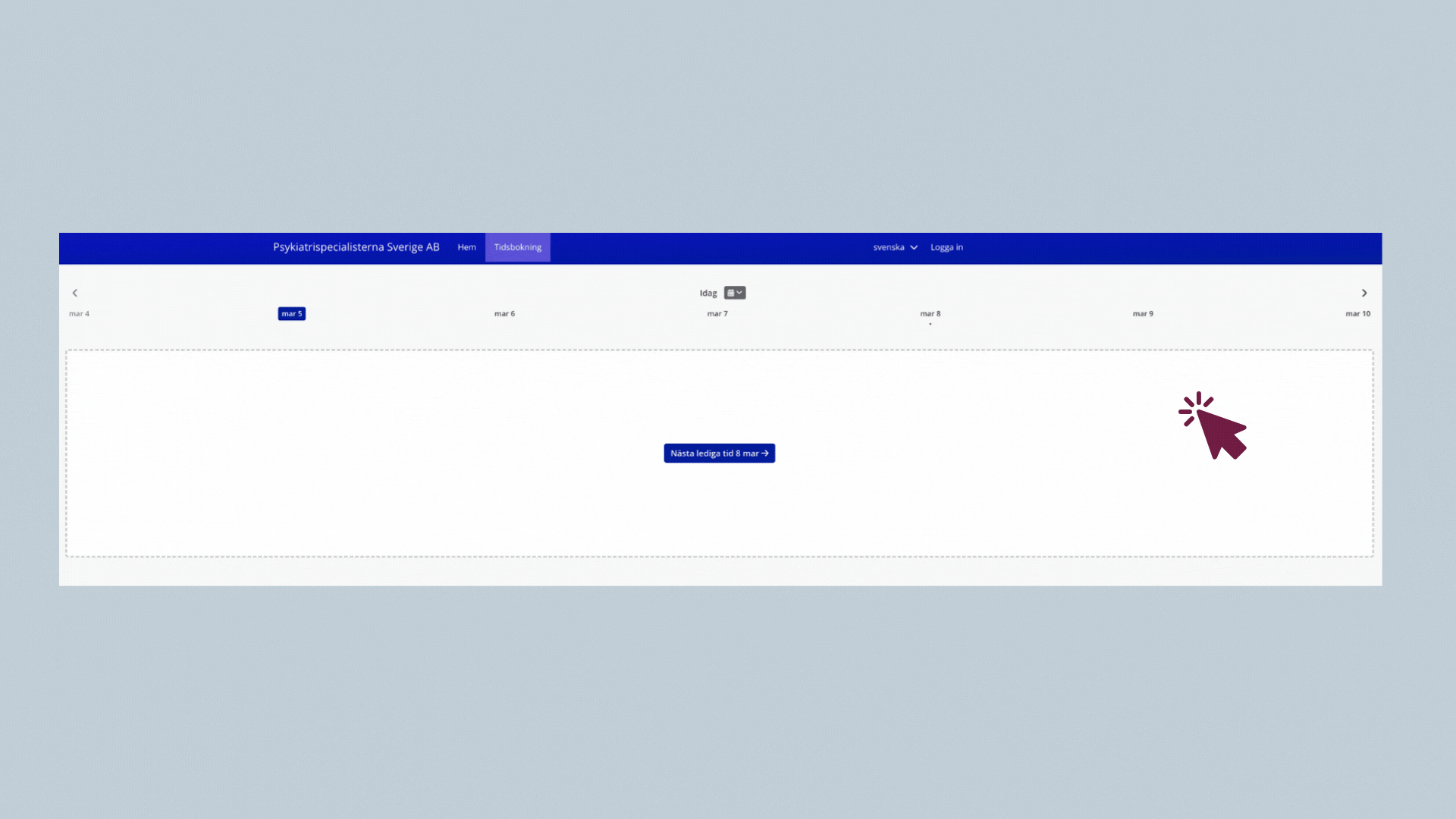 Klicka på pilen för att hitta fler dagar med lediga tider.